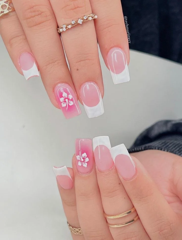 From floral French tips to almond-shaped styles, this combo is all over Pinterest — and for good reason. It’s easy to wear, looks great in photos, and works for any summer plan.